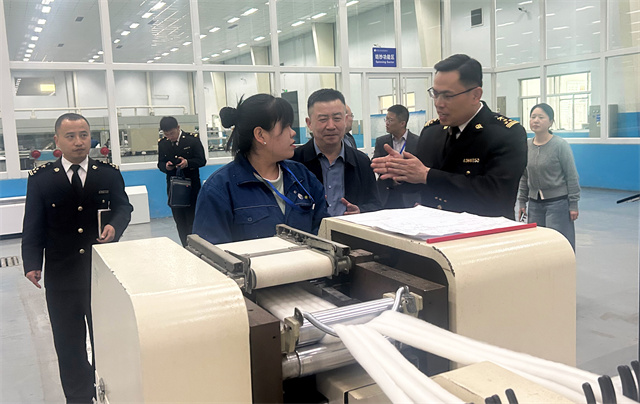 4月16日,濱州海關(guān)黨委書記、關(guān)長(zhǎng)李光一行來(lái)公司參觀調(diào)研。濱州海關(guān)綜合業(yè)務(wù)一科科長(zhǎng)劉金輝,綜合業(yè)務(wù)二科副科長(zhǎng)朱士帥陪同調(diào)研。公司黨委委員、總經(jīng)理閆英山,市場(chǎng)運(yùn)營(yíng)部綜合事務(wù)管理主任楊霞,華紡國(guó)際進(jìn)口部經(jīng)理韓黎明,服裝面料業(yè)務(wù)經(jīng)理王新東,儲(chǔ)運(yùn)部主管楊箐箐陪同。